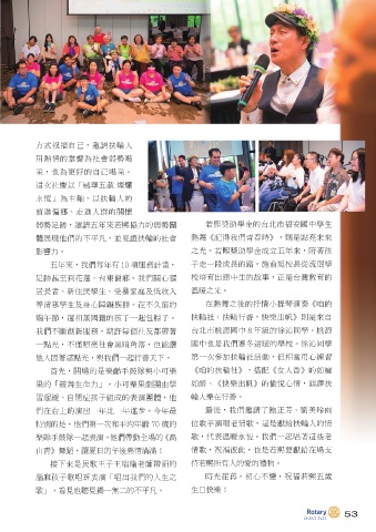 端午節,還和無國籍的孩子一起包粽子。 扶輪社:扶輪行善,快樂出帆》則是來自