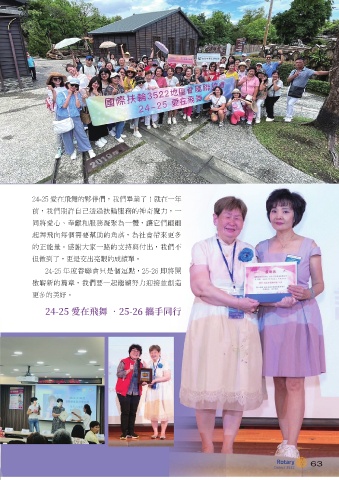 24-25 愛在飛舞的夥伴們,我們畢業了!就在一年 前,我們期許自己透過扶輪服務的神奇魔力,一 同將愛心、奉獻和服務凝聚為一體,讓它們翩翩 起舞飛向每個需要幫助的角落,為社會帶來更多 的正能量。感謝大家一路的支持與付出,我們不 但做到了,更是交出亮眼的成績單。 24-25 年度眷聯會只是個逗點,25-26 即將開 啟嶄新的篇章,我們要一起繼續努力迎接並創造 更多的美好。 24-25 愛在飛舞 ‧25-26 攜手同行 62 6 We are Rotary 63